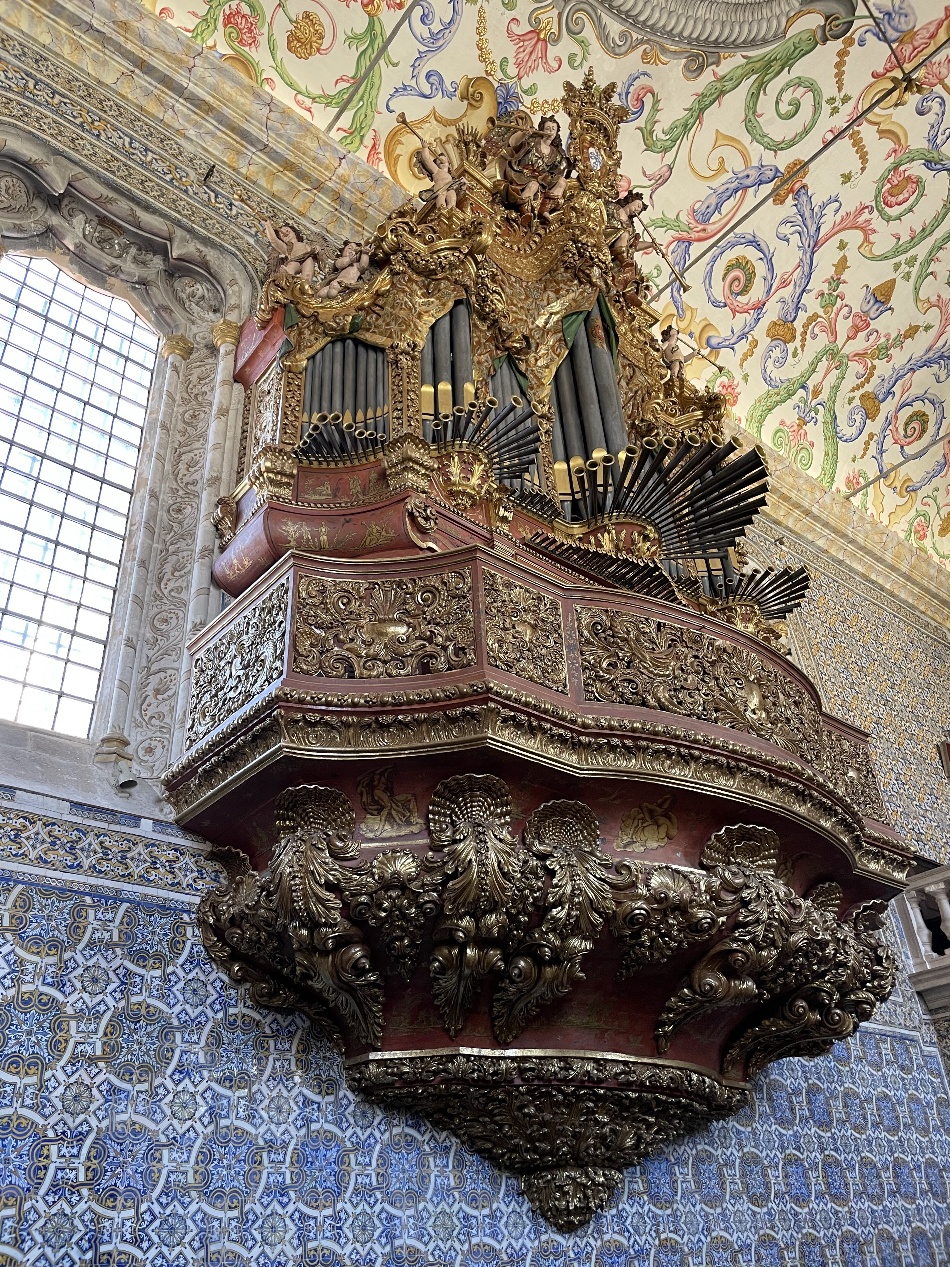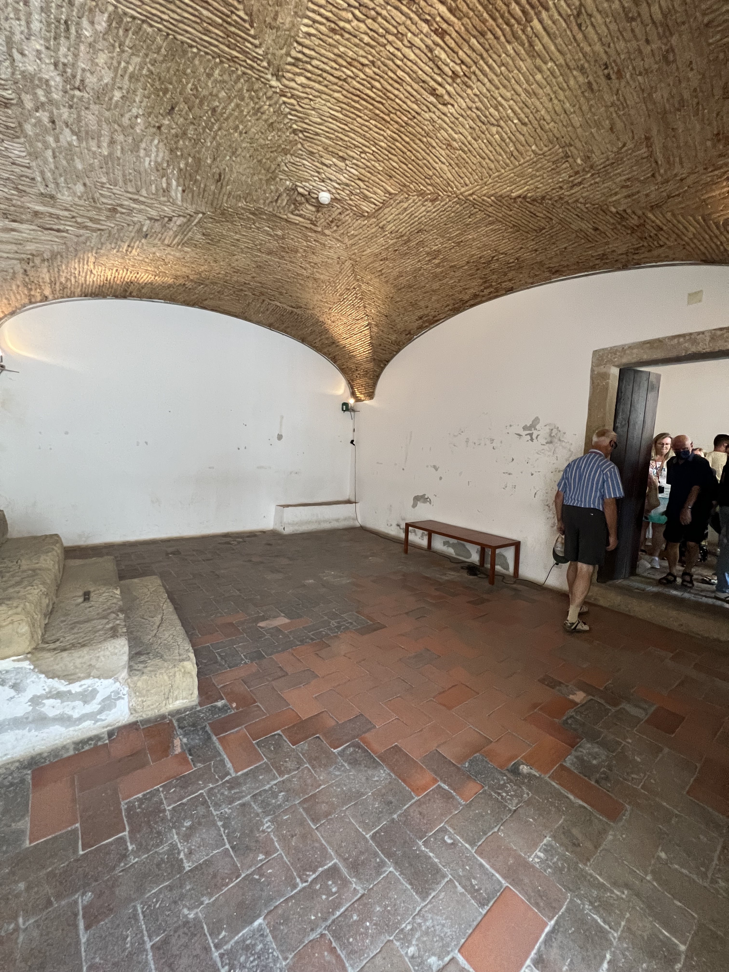 In the photos below are the grounds of the University, which show ongoing restoration. There is a statue there of King Denis, known as the Farmer King for planting a forest to provide raw materials for royal ships and also known as the Poet King because he wrote poetry and was influential in establishing Portuguese as a literary language. There are pictures inside Prisão Académica, which dated back to when the University would hold its own court and imprison students who had broken rules. We were also able to see inside a small library, but the much larger Joanine Library has a no photos rule, so nothing to show there, but the page at this link will has a couple of pictures.