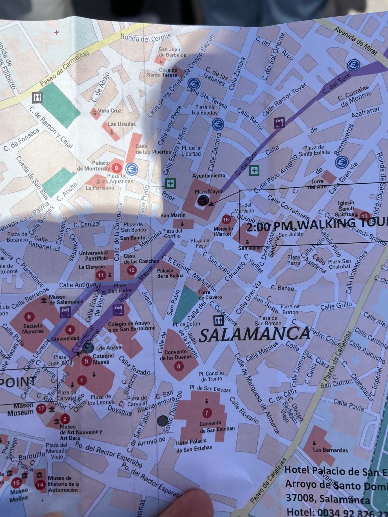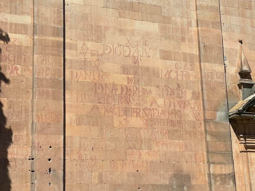 Centuries ago, when a student earned their PhD, the family would host a celebration. The entire city participated, and there was a bullfight. After the bullfight, the student would write their name on the University wall in bull’s blood, mixed with olive oil and herbs. The writing still remains to this day.
