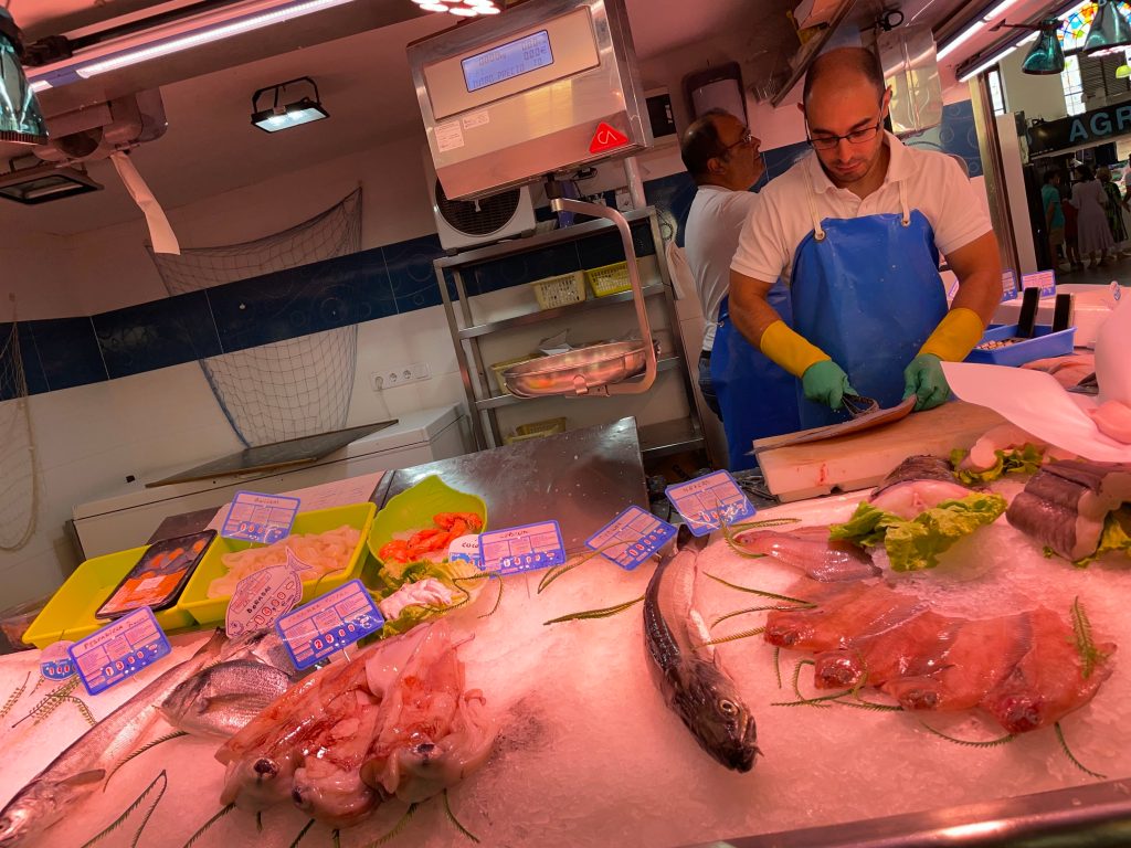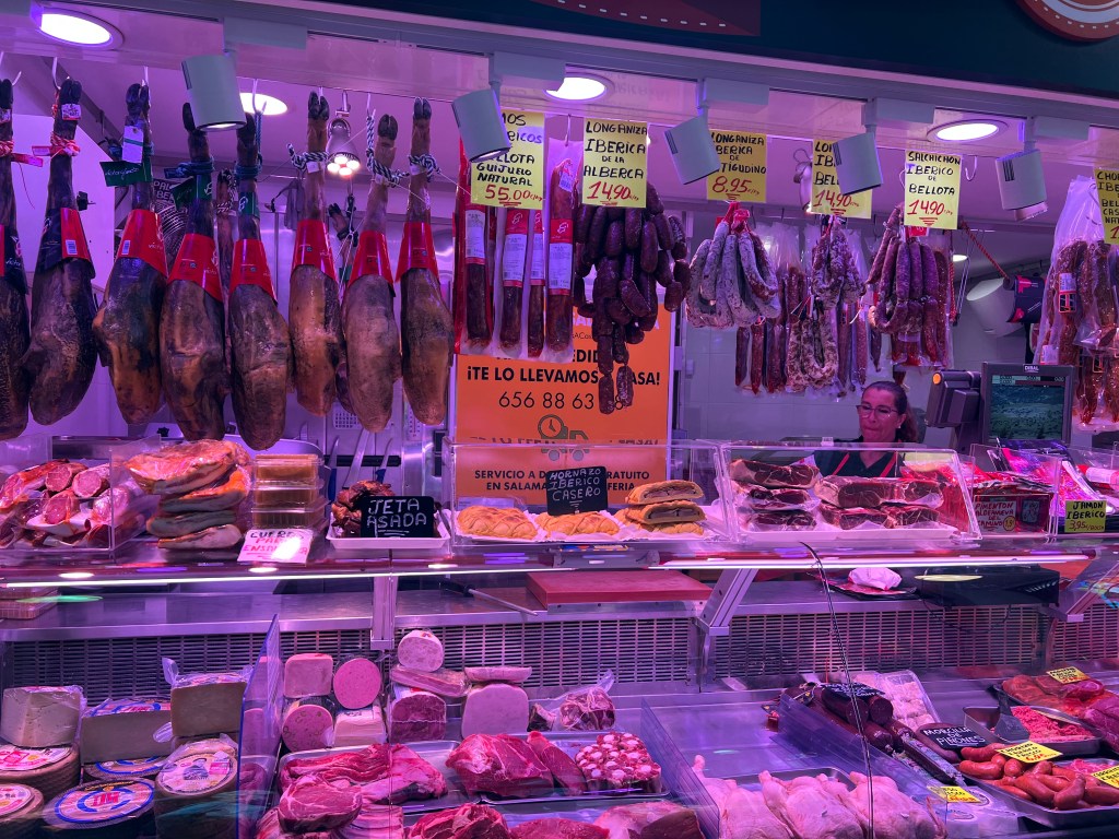 We started at the Plaza, but immediately went on to the Mercado, where we saw lots of fish, produce, and cured meats. We also learned that some meats are cured for 5-8 years! The longer the meat is cured, the more expensive it is. Some was selling for $100+ / kilo!