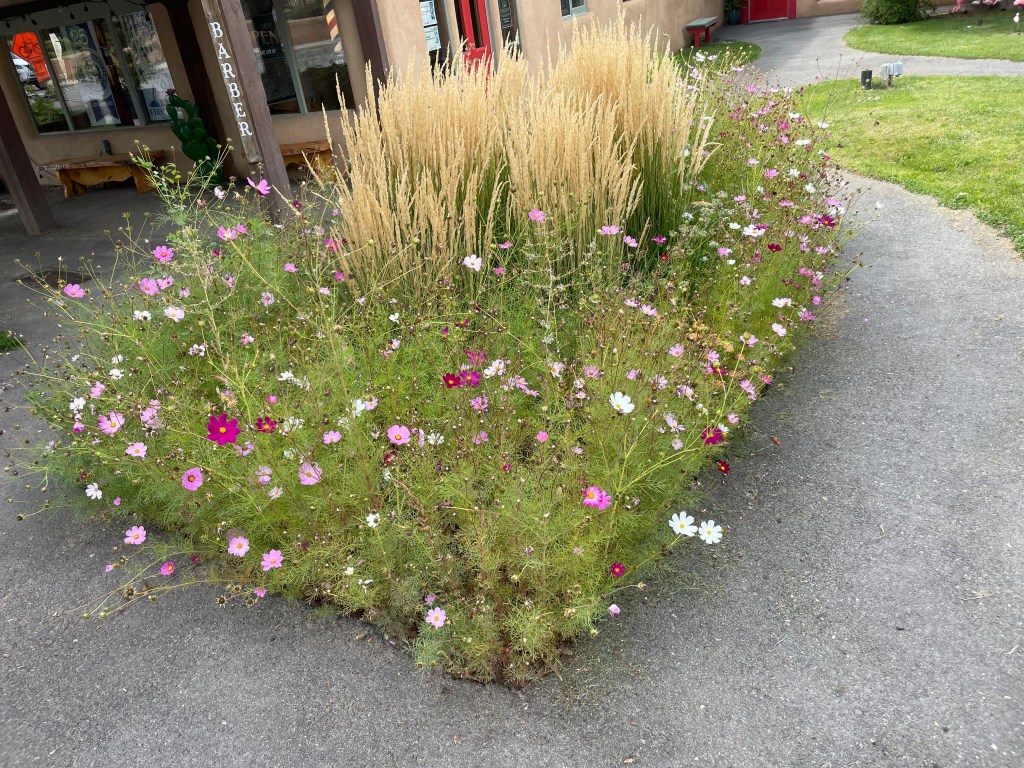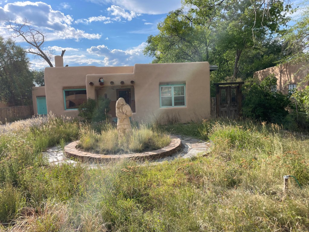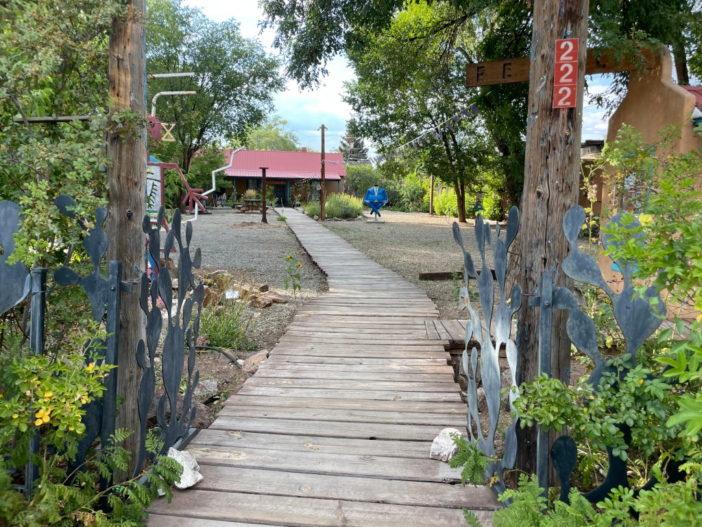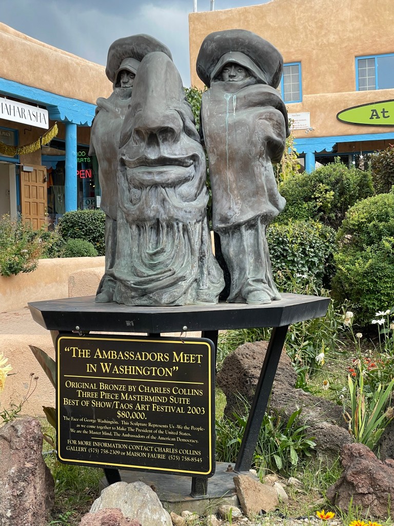 Of course we had to explore downtown. Taos Plaza was full of opportunities to find t-shirts, art, and more. There was construction all around where we were staying, but the walk was worth it, with beautiful gardens and art easily viewed along the way.